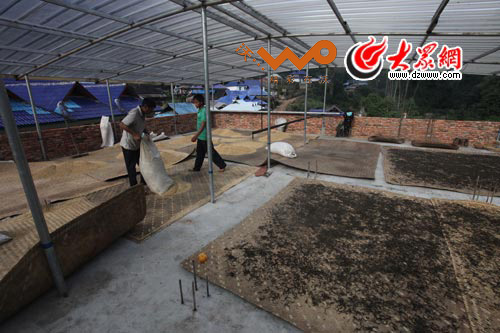 “今年的春茶賣到五六百塊錢一公斤,現在的谷花茶也能賣二百多塊錢!睅r三光介紹,茶葉每年可以采很多批,最早一批春茶價格最高。村民把茶葉采回來后,平攤在簸箕中曬青,制成普洱茶的原料干毛茶,等著外來的客商上門收購。古茶樹資源稀缺,村民不用擔心銷路。