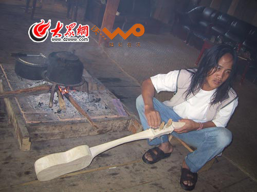 巖瓦洛是真正的富翁,而且是一個愿意為布朗族彈唱做出貢獻的富翁。在曼芽村見到他的時候,這位衣著樸素的小個子男人正在村里指揮工人們,給他建造一座四百平米、造價一百三四十萬的布朗族風格的桿欄式純木結構的房屋。用百萬富翁來形容已經是太小瞧他了,因為用他自己的話來說現在一年的收入“也就是掙一兩棟這樣的房子”。