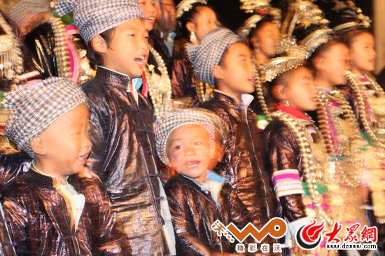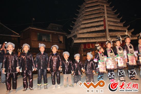 在侗寨的鼓樓下,少兒隊唱的侗族大歌絲毫不比成人差。