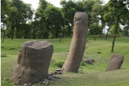 二、石祖之林。劉鳳君教授在首陽山附近發現了一處造型奇特、極似男性陽具的石林,經考證認為:這是石祖,昌樂石祖應是龍山文化晚期的遺物,是東夷文化進入父系氏族社會盛期的性器官崇拜作品,也是巨石文化崇拜時期留下的奇跡,距今已有4000多年的歷史,與昌樂骨刻文的年代大體接近。性器官崇拜,在今天看來有點不可思議,然而巨石雕刻年代是父系氏族社會發展的盛期,這個時期的人們對人類增長的渴求促進了對男性生殖器的狂熱崇拜,在這種社會背景下雕刻大型的男性生殖器藝術,應在情理之中。因此,劉鳳君教授遂命其為“崇山石祖林”。