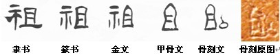 例如“祖”字,只是較骨刻文少了一個小球,而表聲表意的形旁與甲骨文相差無幾,這對于研究中國早期文字的發展演變是極為重要的實物資料。
