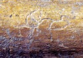 這種春游文化在昌樂骨刻19號獸骨殘片中可以清晰的看出,這是一幅頗為生動的游玩圖,你看這骨片的最下方好象是一個(gè)頭戴草帽、甩著拐杖的老翁,正在悠然自得的遛彎。上邊好象是一個(gè)孕婦,正在信步向前,后面好象是其愛子,手中高甩著一根柳枝,或是一件玩具,正朝右方走去(這位老翁的形象,并被甲骨文和金文基本借鑒)。左側(cè)和對面似乎是兩個(gè)少年兒童,都在歡唱、蹦跳著,正朝對面方向雀躍而去。最上端好象是一組家庭出行圖,極似一位跨著步子,左手?jǐn)y著一位少兒的青年女子,正在邊走邊回頭向后說著什么?后面是一位躬身大步向前傾聽模樣的男子,可以看出,這是一家三口正出行游玩。這一家前行的方向與兩個(gè)少年和下邊這位老翁前行的方向相同,可能是那邊有什么表演、一處景觀或其他吸引他們的事件。因此筆者為其取名為“春游”圖。