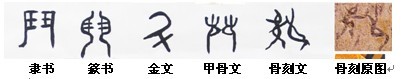 從昌樂骨刻中可以看出,許多動物和飛禽都繪制的很形象而逼真。例如昌樂骨刻文36號中是一幅林野中歡快百態(tài)的群鳥圖,66號中一片竹林邊一只山羊與一只仙鶴正在戲耍,67號中一頭牛正在悠然自得的前行,72號中一只幼鹿回頭圖被刻畫的惟妙惟肖,而3號中的“狐”、13號中的“蟲”、14號中的“馬”、“犬”、16號中的“鳥”、42號中的“兔”、54號中的“鼠”、66號中的“羊”、67號中的“牛”等,都頗為形象。筆者研究發(fā)現(xiàn),這些均被甲骨文和金文所借鑒,有的基本上原樣成字。可以看出,長期以來,東夷人與動物和平共處,與動物相互影響,而且很多動物的行為被人類所借鑒,動物文化也被文化動物所研究,并且還據(jù)此創(chuàng)造出了中國最早的文字。而同一時(shí)期的周邊文化雖有類似文字的符號出現(xiàn),但均與六書之首的象形字相去甚遠(yuǎn),距離演變成漢字還有較遠(yuǎn)的路程,極有可能在漢字演化過程中被優(yōu)化掉了。而東夷半文半畫的“形象畫”則被首選為“象形字”。