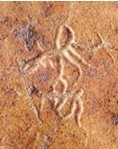 筆者在研究昌樂骨刻文時(shí),就發(fā)現(xiàn)了有些作品突出地表達(dá)了母系文化。在一件昌樂發(fā)現(xiàn)的牛肩胛骨臼上刻畫的就是一幅頗具代表性的母系文化圖。該圖以一位母親(孕婦)形象為中心和主題,下方似是一個(gè)女子和一個(gè)男童;上方殘痕處也似一個(gè)男人,右側(cè)也是一位模糊的人像,都是圍繞著這位母親。這種以半圖半文的形式所表達(dá)的意境,使人很容易聯(lián)想到母系社會中母親的中心地位。