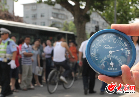 6月8日14:41 濟(jì)南商貿(mào)學(xué)校 見習(xí)記者 馬鑫:烈日下的溫度已達(dá)45攝氏度