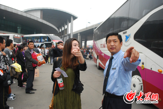 [提要]   “十一”黃金周的第一天,早上6點,大眾網記者來到號稱“中華第一站”的濟南長途汽車總站,因為工作超級繁忙,大眾網記者只能一路小跑,“追”著采訪調度科副科長張傳滿。