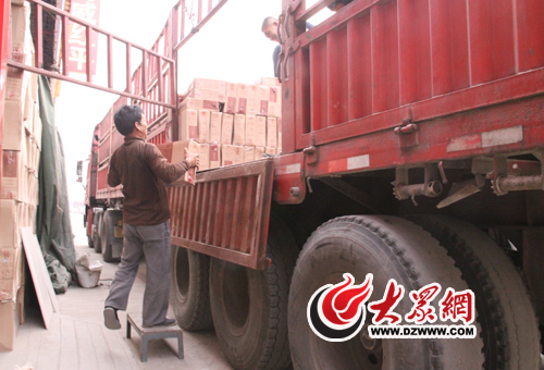 早上8點,建材市場的大部分商家剛剛開門營業,在市場第4004攤位前,此時正有4名搬運工往一輛大貨車上扛瓷磚,經過交談記者得知,他們正在裝的是1400箱即將發往威海的墻磚,為了能親身感受一下他們每天的工作,記者也卷起袖子幫著干了起來。