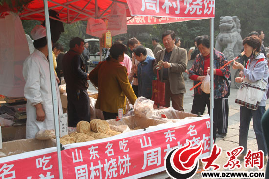 記者發現,山會上最受游客歡迎不是沒有特色的旅游紀念品,而是有特色的民間小吃,像天津大麻花、廣州老婆餅、東北的朝鮮打糕都吸引了大量游客,周村燒餅、宗記鍋餅、山東大棗等本地貨也很受歡迎。在一家“周村燒餅”攤位上擺滿了原味、五香、奶油等多種口味的燒餅,購買燒餅的游客絡繹不絕,很快就賣出了幾十袋,還不斷有游客過來詢問價格。另外,像孔府煎餅、商河酥餅也很受青睞。