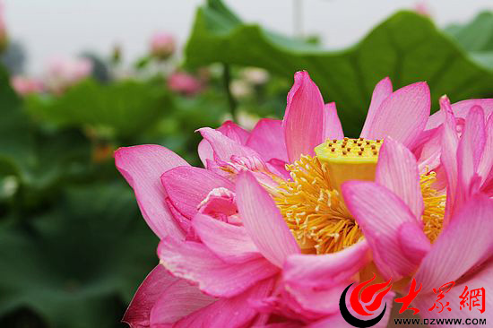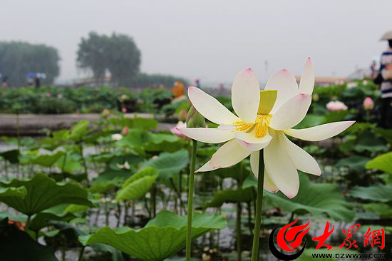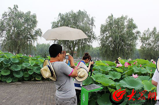 (記者們各種裝備齊上陣 爭相拍攝雨后荷花)