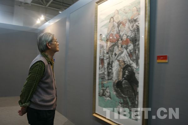 [提要] 有句話說:“一千個(gè)人眼里有一千個(gè)哈姆雷特”,其實(shí),對(duì)于熱愛西藏、向往西藏的人來說又何嘗不是如此呢!薄 ∏窭蠣斪涌串嫹浅UJ(rèn)真,只見他一幅幅作品挨著看過去,每走到一幅畫前都仔細(xì)端詳,時(shí)不時(shí)跟記者分享他的感受。