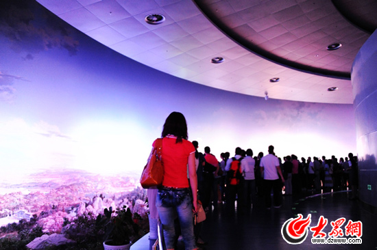 記者登塔后發現,中原福塔分為塔座、塔身、塔樓、桅桿四個部分。據工作人員介紹,塔座地下一層為設備層和停車場,塔座一層為大未來兒童城,由兒童職業體驗館、阿凡達數字科技館、優優龍親子樂園組成。其中最為值得人稱道和關注的就是位于塔座三層、四層中心筒的《錦繡中原》全景畫館。《錦繡中原》全景畫高18.422米,長163.520米,繪畫面積3012.365平方米,地面塑型2200平方米,已成功申請吉尼斯世界紀錄,是世界上最大的全景畫。通過瀏覽這幅聲、光、影薈萃一堂的《錦繡中原》全景畫,便可大致了解涵蓋河南全省十八個省轄市的山川原野、城鄉風光、名勝古跡、人文景觀。該畫還全面展現了中原大地的遠古、現代和未來,是一部歌天頌地、富于創新、震撼人心的宏偉畫卷。