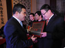 山東省宣傳部副部長(zhǎng)劉保聚為獲獎(jiǎng)單位頒獎(jiǎng)