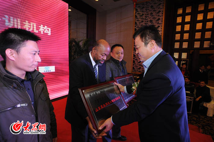 山東省教育考試服務中心主任王美俊為獲獎單位代表頒獎