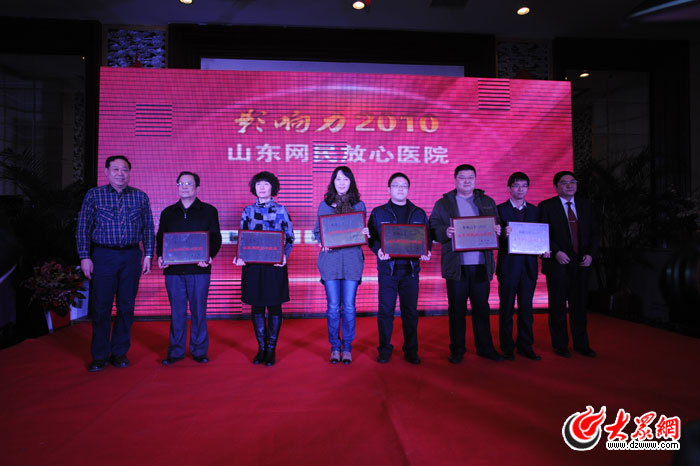 “山東網(wǎng)民放心醫(yī)院”獲獎(jiǎng)單位上臺(tái)領(lǐng)獎(jiǎng)