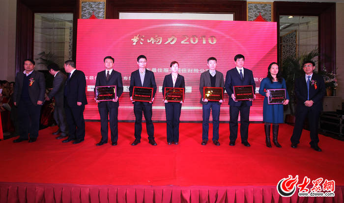 “山東最佳服務誠信財險公司”獲獎單位上臺領獎
