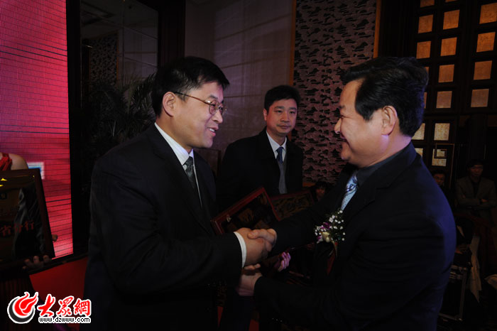 山東省宣傳部副部長劉保聚為獲獎單位頒獎
