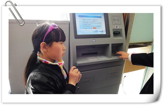 最小體驗者上佳表現之二:親手把錢從這大機器里取出來,拿到大鈔的感覺真爽呀。長這么大第一次取款,有紀念意義的時刻。
