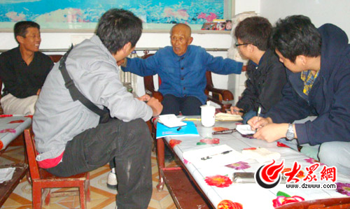 王壽濱老人講到激動之處伸出雙臂比劃著