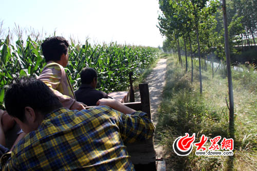 老鄉(xiāng)的駕駛技術實在是高,沒有前燈,沒有后視鏡,沒有轉向燈的拖拉機在公路上“突突馳騁”的時候,突然一個急轉,就轉入了一條一米多寬的土路上。路的一邊是玉米地,一邊是深兩三米的河溝。一塊塊泥土不時被車輪碾入河中,車斗內一邊尖叫不斷。