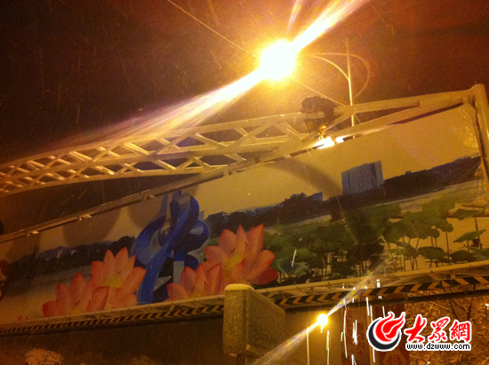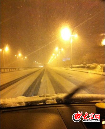 20點(diǎn)30分,濟(jì)南市經(jīng)十東路部分路段積雪達(dá)10厘米以上。