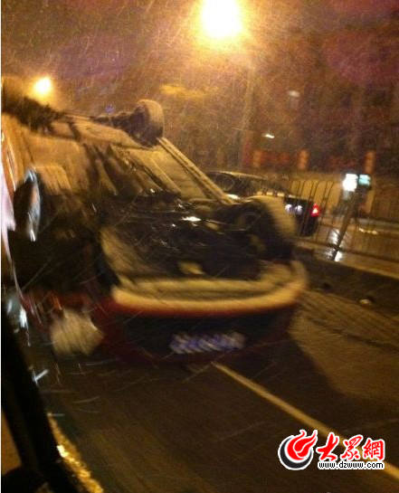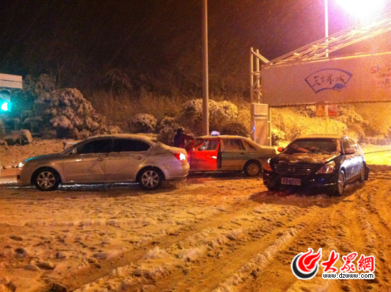 強(qiáng)降雪同樣帶來(lái)了市區(qū)道路濕滑、駕駛員視線模糊等問(wèn)題。記者通過(guò)多種途徑了解到,濟(jì)南市區(qū)部分路段發(fā)生數(shù)起嚴(yán)重交通事故。18點(diǎn)左右,在濟(jì)南經(jīng)六路與營(yíng)市西街交匯處,一輛紅色福特轎車在撞擊馬路中央防護(hù)欄后發(fā)生側(cè)翻,阻礙了該路段道路通行。21點(diǎn)左右,旅游路與千佛山南路交匯處發(fā)生多起交通事故,其中一輛黑色奧迪轎車與黑色尼桑轎車發(fā)生碰撞,事故較為嚴(yán)重,據(jù)目擊者稱,黑色奧迪轎車在與尼桑轎車碰撞后滑行出近千米,車輛前部毀壞嚴(yán)重。