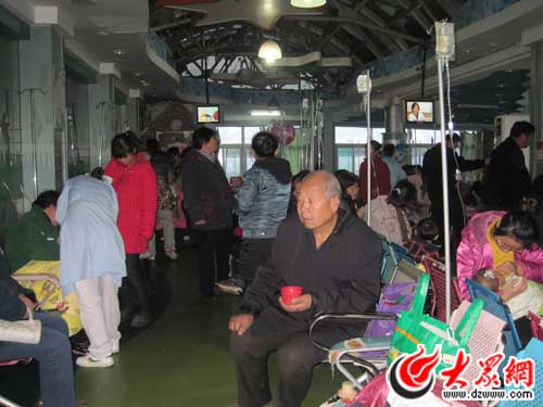 濟南市中心醫(yī)院兒科輸液區(qū)顯得格外忙碌