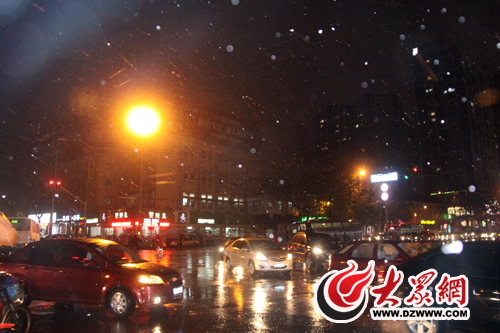 從下午5點開始,夾雜著雨點,濟南的天空就落下的陣陣雪花。