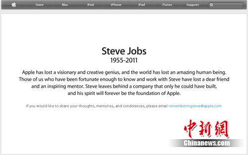蘋果公司官網(wǎng)證實前首席執(zhí)行官喬布斯去世