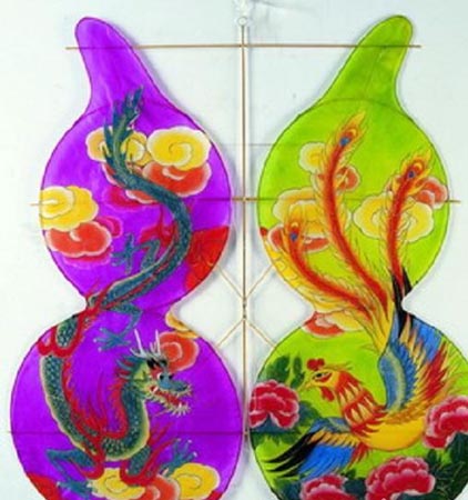 風(fēng)箏制作工藝考究,集扎、糊、繪于一體,其骨架結(jié)構(gòu)、系線的位置、線的長短和根數(shù)、迎風(fēng)的角度和力度,都很有講究,否則就飛不高、飛不穩(wěn)。傳統(tǒng)中國風(fēng)箏的技藝概括起來只有四個字:扎、糊、繪、放。簡稱“四藝”。簡單地理解這“四藝”即扎架子,糊紙面,繪花彩,放風(fēng)箏。但實際上這四字的內(nèi)涵要廣泛得多,幾乎包含了全部傳統(tǒng)中國風(fēng)箏的技藝內(nèi)容。如“扎”包括:選、劈、彎、削、接。“糊”包括:選、裁、糊、邊、校。“繪”包括:色、底、描、染、修。“放”包括:風(fēng)、線、放、調(diào)、收。很多人一邊放風(fēng)箏,一邊還要對風(fēng)箏進(jìn)行改進(jìn)或調(diào)整。風(fēng)箏的題材豐富多彩,造型夸張,繪制精細(xì),并充滿著美好的理想與寄托,如蝴蝶、燕子表示春天的到來,荷花、鴛鴦象征著純潔的愛情,蝙蝠、仙鶴童子寓意福壽,龍與鳳表示歡樂吉祥、國泰民安。中國的風(fēng)箏已有二千多年的歷史,傳統(tǒng)的中國風(fēng)箏上到處可見吉祥寓意和吉祥圖案的影子。在漫長的歲月里,我們的祖先不僅創(chuàng)造出優(yōu)美的凝聚著中華民族智慧的文字和繪畫,還創(chuàng)造了許多反映人們對美好生活向往和追求、寓意吉祥的圖案。它通過圖案形象,給人以喜慶、吉祥如意和祝福之意;它融合了群眾的欣賞習(xí)慣,反映人們善良健康的思想感情,滲透著我國民族傳統(tǒng)和民間習(xí)俗,因而在民間廣泛流傳,為人們喜聞樂見。“福壽雙全”、“龍鳳呈祥”、“百蝶鬧春”、“鯉魚跳龍門”、“麻姑獻(xiàn)壽”、“百鳥朝鳳”、“連年有魚”、“四季平安”等風(fēng)箏無一不表現(xiàn)著人們對美好生活的向往和憧憬。三月三上巳或清明節(jié)期間賽紙鳶、放風(fēng)箏民俗,起源于民間“斷鷂放災(zāi)”信仰。初時,人們將所有的災(zāi)病寫在紙鳶上,待風(fēng)箏高飛之際,剪斷風(fēng)箏線,當(dāng)紙鳶隨風(fēng)飄逝之時,也象征著所有的災(zāi)病都隨風(fēng)箏一一消逝。藏族老人放風(fēng)箏,至今還在風(fēng)箏和線的接頭處,插上一柱香,風(fēng)箏飛到一定高度時,香火將線燒斷,風(fēng)箏便隨風(fēng)飄去,飄得越遠(yuǎn),說明自己越健康長壽。另一方面,農(nóng)家更希望那些在田畝上空的紙鷂能驅(qū)走畦間的惡鳥、害蟲,以祈得一年五谷豐登。