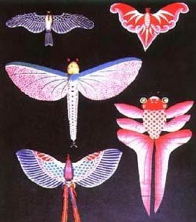 風(fēng)箏在中國有北鳶、南鷂之分。傳統(tǒng)樣式有串型風(fēng)箏(以龍頭、蜈蚣為主)、筒子型(以立體宮燈為主)、板子型(以八卦形為主)、軟翅型(以蝴蝶、蜻蜓為主)、硬翅型(以燕子、神話人物為主)。串類風(fēng)箏是把數(shù)只相同或者不同的風(fēng)箏,像穿糖葫蘆似的拴在一根或多根線上放飛的風(fēng)箏。這類風(fēng)箏升力強勁,氣勢恢宏,具有生動活潑、龍活活現(xiàn)的藝術(shù)表現(xiàn)力。代表作品有龍頭蜈蚣風(fēng)箏,一字大鷹風(fēng)箏等。板子風(fēng)箏即平面風(fēng)箏,它的升力片是主體,無凸出部分,風(fēng)箏四邊有竹條文撐,如民間廣泛流行的臉譜風(fēng)箏、雙魚風(fēng)箏、青蛙風(fēng)箏等。這類風(fēng)箏扎制容易,飛升性能好,適合表現(xiàn)多種題材,是少年兒童最喜愛的一種。為了便于起飛,這些風(fēng)箏一般都掛著一條長長的“鳶尾”或穗子,以求平衡,八卦風(fēng)箏、龍鳳風(fēng)箏是這類風(fēng)箏的代表。