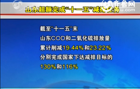 近日經環保部核定山東超額完成國家下達的“十一五”減排任務。截至“十一五”末,COD和二氧化硫排放量累計削減19.44%和23.22%,分別完成...