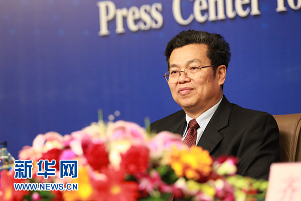 2011年3月9日上午9時 ,十一屆全國人大四次會議新聞中心在梅地亞中心多功能廳舉行主題為“保障性住房建設和房地產市場調控”記者會。圖為房地產市場監管司司長沈建忠。(新華網 吳莼 攝)