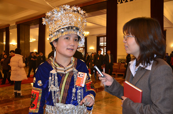 全國人大代表李小燕接受記者采訪