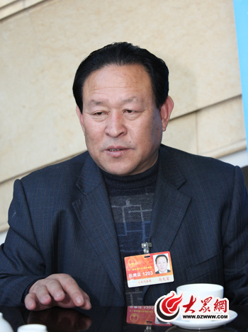 全國人大代表、日照莒縣陵陽鎮(zhèn)陵陽街村黨總支書記馬先富接受大眾網記者采訪