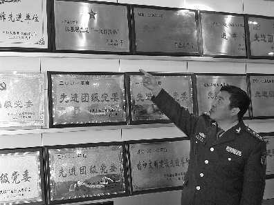 3月15日,臨沭縣人民武裝部部長王金華給記者展示他們獲得的各種榮譽。 本報記者 李飛 攝