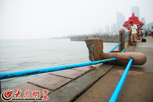 五四廣場前海防護欄連根拔起
