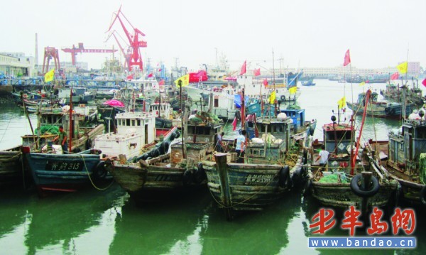 [提要] 7日下午,小港碼頭內,不少漁船來此躲避臺風 。沙子口漁港已經封港,紅島、黃島等地漁船相繼到小港避風,漁民加固漁船,養殖戶加固養殖箱,7日下午,記者探訪發現,島城各大港口已經做好了抗擊臺風的準備。