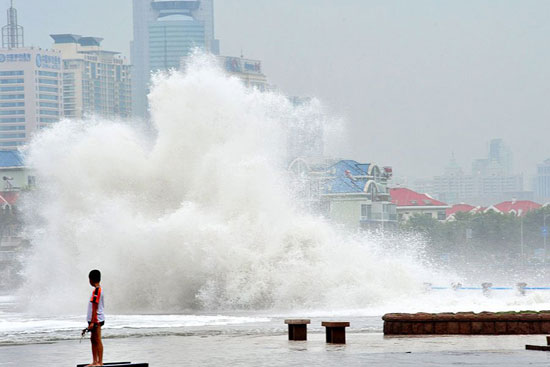 8月7日中午,臺(tái)風(fēng)“梅花”加速靠近山東半島沿海,在青島沿海掀起五米高的巨浪。