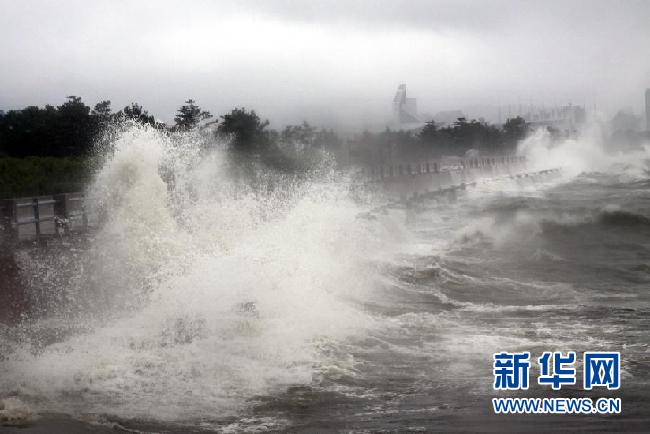 資料圖:8月8日,山東省威海市威海公園景區沿岸巨浪拍岸。據中央氣象臺消息,當日13時,強熱帶風暴“梅花”位于遼寧省丹東市以南大約200公里的黃海北部海面上。新華社發