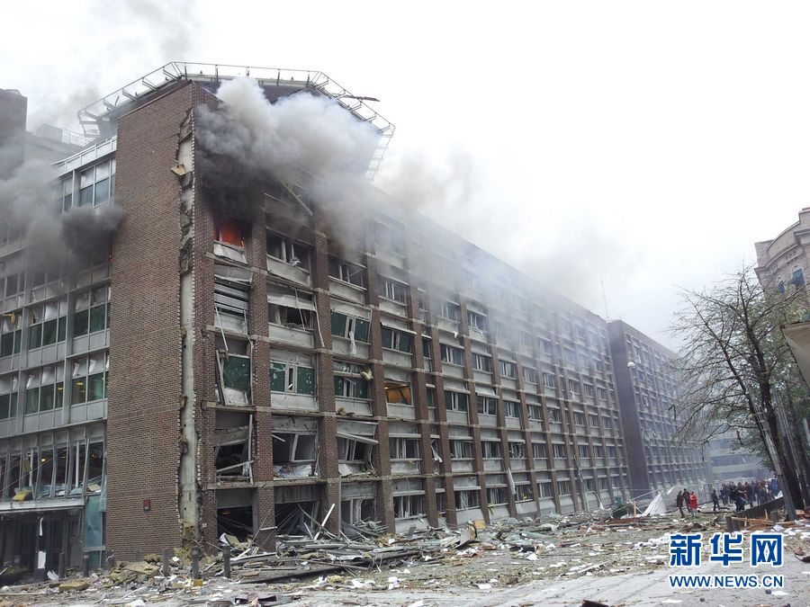 7月22日,挪威首都奧斯陸市的政府辦公區發生爆炸后濃煙滾滾。新華社/路透