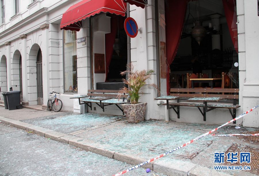 7月22日,在挪威首都奧斯陸市中心的商店玻璃被炸碎。當日,據警方聲明,挪威首都奧斯陸發生劇烈爆炸,造成人員傷亡。 新華社記者 劉敏 攝