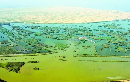 沙湖的開發和保護并重,俯瞰鳥島蘆葦保護區,沙湖呈現給人的是一派生態和諧的可持續發展景象。