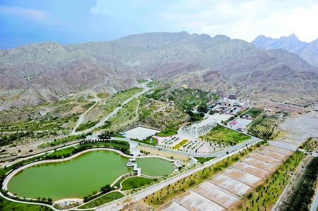 賀蘭山下的武當廟周圍,昔日戈壁荒灘,如今成為大武口森林公園。
