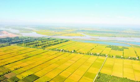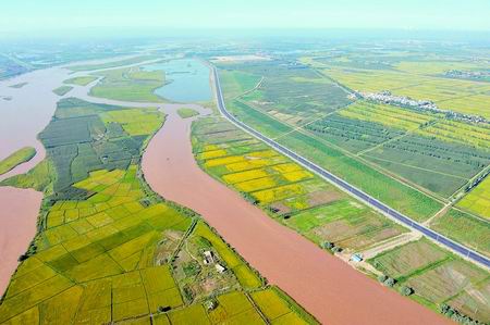 黃河之水從濱河大道走來,黃河金岸綠洲稻花飄香。
