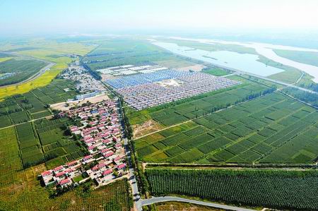 黃河岸邊,碧綠原野,點綴著整齊劃一面貌一新的農民新居。