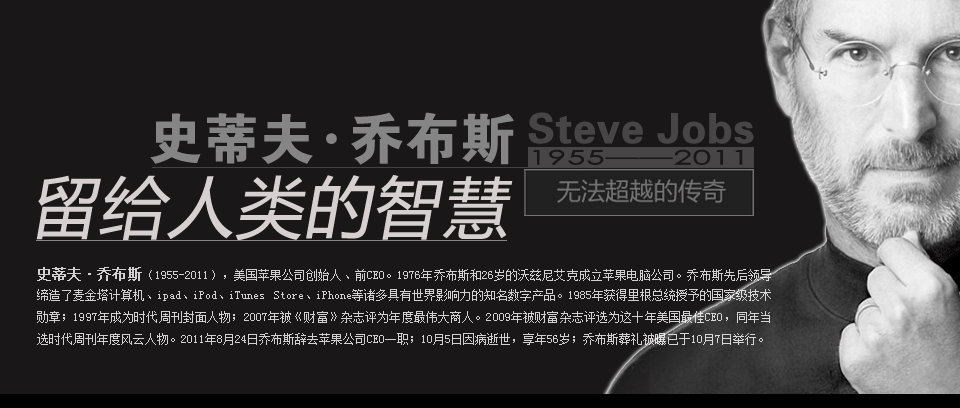 蘋果公司創辦人兼前CEO、迪斯尼公司的最大個人股東——喬布斯,是一位與眾不同的企業家,他改變了計算機、電影制作和音樂、手機等多個影響人類生活、教育與娛樂的行業。