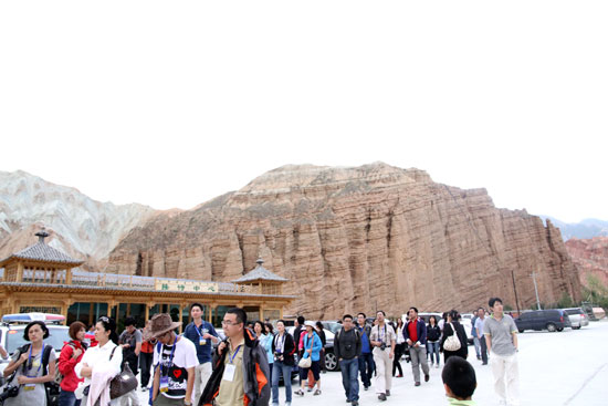 這是重點網絡媒體記者行在貴德采訪返程途中,主辦方善解人意安排的參觀活動。也許,當他們組織此行程的時候,已經預見到這群鋼筋混凝土叢林中來的人,仰望這蒼茫群山時,滿臉的敬畏與虔誠……
