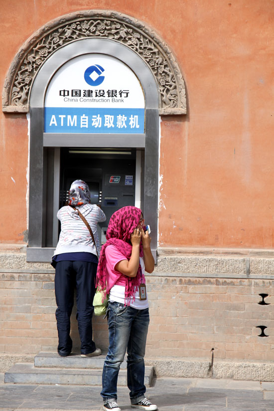 特別有意思的一個畫面,塔爾寺某個建筑的墻面,非常神奇又無比自然的開辟出一個ATM自動取款機。