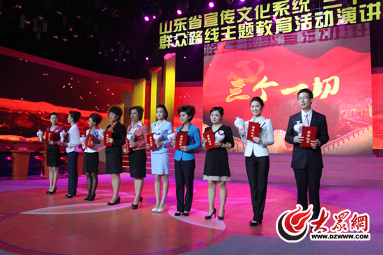 [提要] 今天上午,山東省宣傳文化系統(tǒng)“三個一切”群眾路線主題教育活動演講比賽決賽在濟南舉行。14名選手經(jīng)過角逐,山東廣播電視臺、大眾報業(yè)集團、濰坊市委宣傳部選送的選手獲得一等獎。