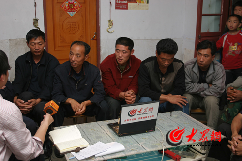 大眾網訊 6月6日晚10點,山東省日照市莒縣洛河鎮東皂湖村劉中富家中燈火通明,“史上最牛救援隊”10名隊員一字排開,坐在小馬扎上。面對記者和網友的提問,他們七嘴八舌打開了話匣子。從他們簡單的回答,山東農民的純樸真摯和仁義大愛再次淋漓盡致地揮灑在記者面前。圖為隊員接受本網訪談。